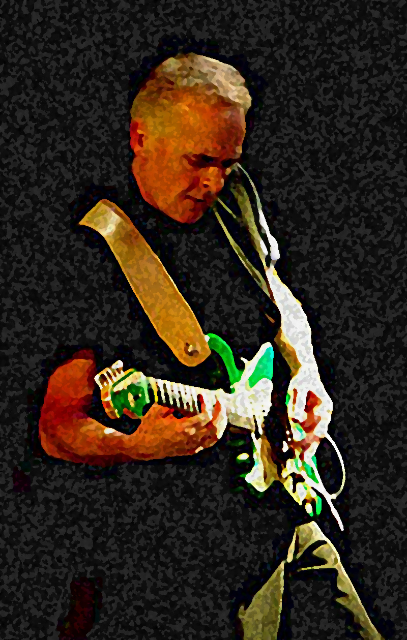 I first saw him with Timebox at a jazz festival we were playing at as well about 1968(?). We were a band called the Blossom Toes incidentally. He was playing mainly the vibes then but did play some guitar (a white Fender Telecaster) but had not. at that time, developed his unique ' streaming' soloing ability.